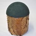 • Remplir ce pot recouvert avec un morceau de mousse OASIS trempé et posez la demi boule de mousse dessus ,transpercez avec en morçeau de bois assez long pour faire adherer la demi boule.