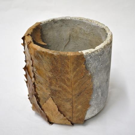 • Prendre un pot de terre et collez à l'aide du pistolet à colle les feuilles de chataignier en les chevauchant partiellement.