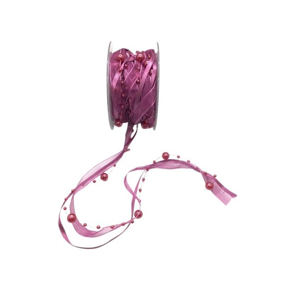 Ruban de satin sur guirlande de Perles parme