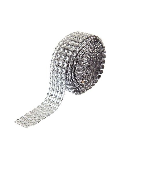 RUBAN incrusté de STRASS ARGENT, de très belle qualité, pour collage, montage et décoration florale...